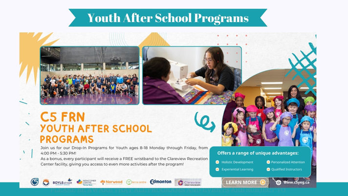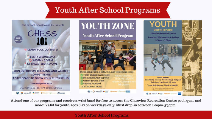 Come check out the C5 Youth Hub located at the Clareview Recreation Centre (entrance 3). Our team provides a wide variety of youth programs; keeping youth busy after school, during summer and winter breaks.